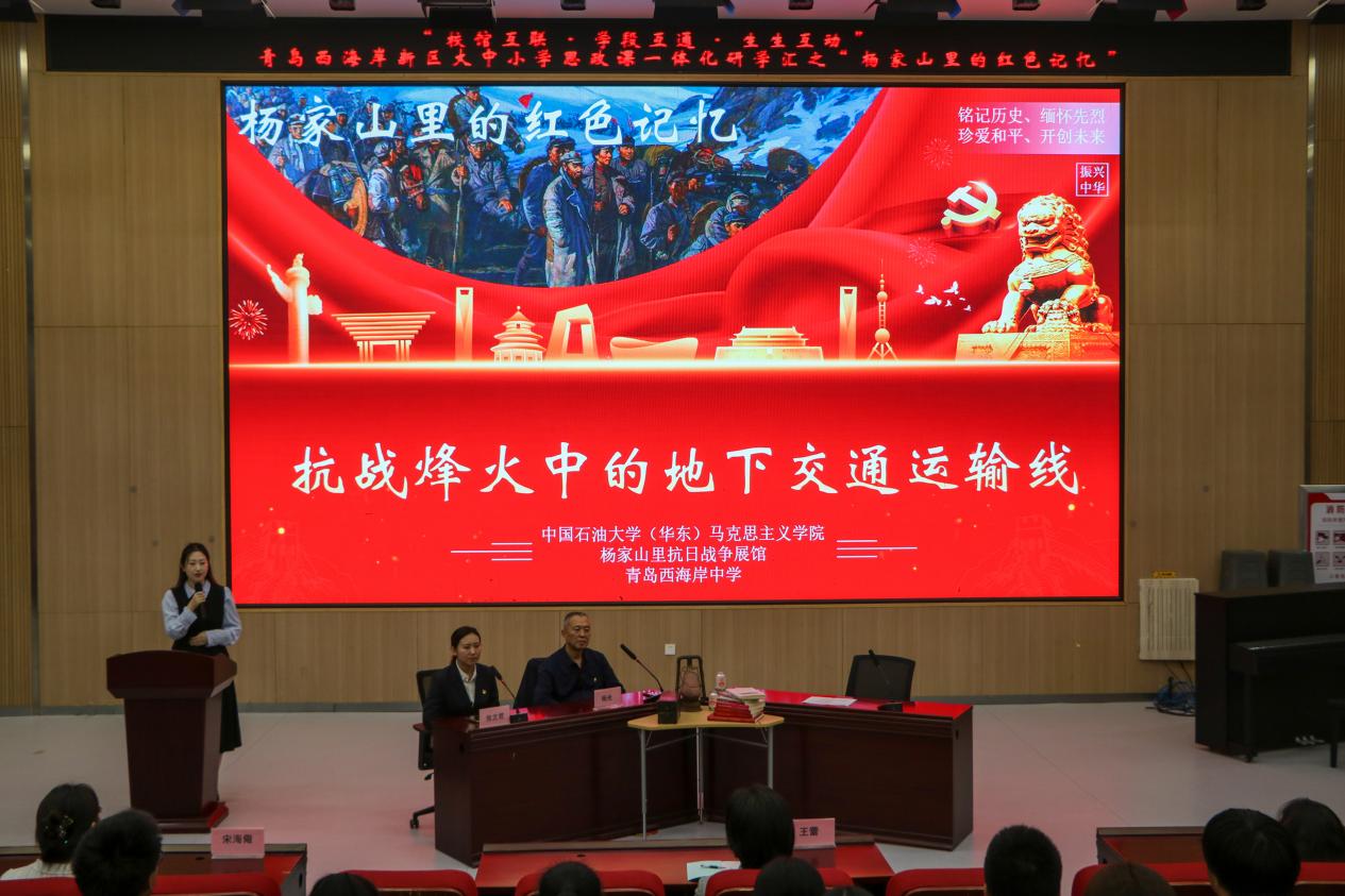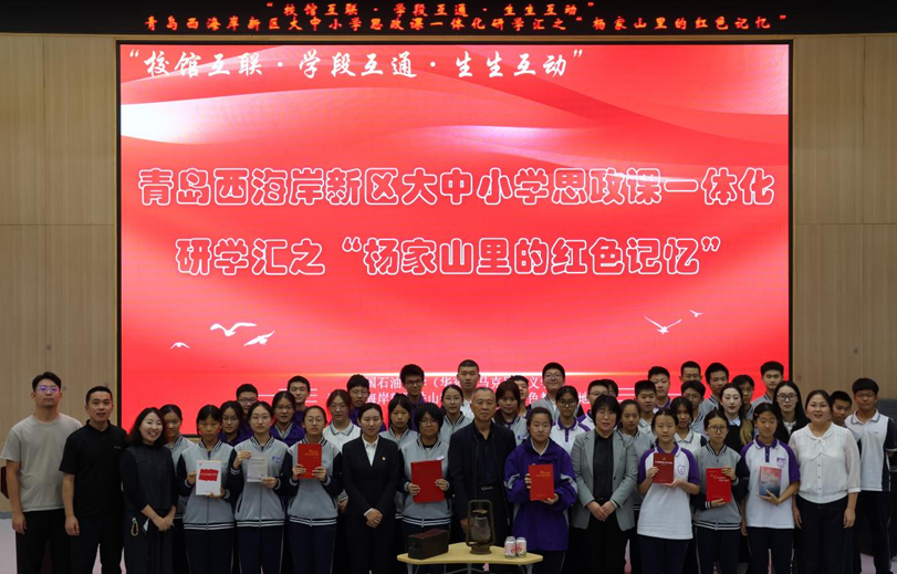 为深入推进大中小学思政课一体化建设,学院于10月14日在青岛西海岸中学举办“杨家山里的红色记忆”教学活动。本次活动采取“校馆互联·学段互通·生生互动”模式,邀请杨家山里革命后代杨光、杨家山里抗日战争展馆馆长张文君作为访谈嘉宾,Beat365官网副院长宋海儆、西海岸新区铁山街道党办主任王蕾、青岛西海岸中学副校长毕善忠、青岛西海岸中学师生代表出席活动。