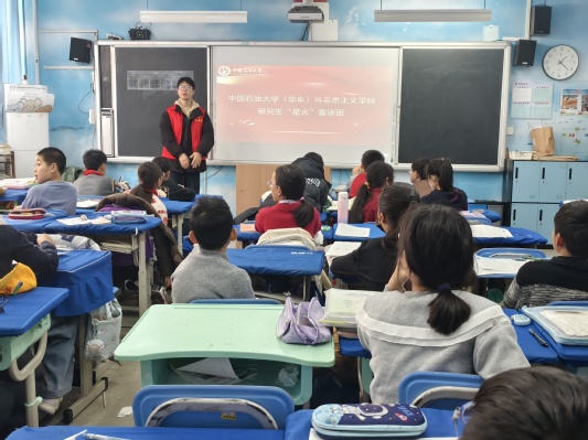 2025年12月19日,Beat365中文官方网站星火宣讲团六位成员在王会老师带领下,走进青岛西海岸新区珠江路小学开展理论宣讲活动,为六个班级的小学生打造系列沉浸课堂,让红色传统与当代价值相交融,在少年心田中埋下信仰的种子,静待生长。