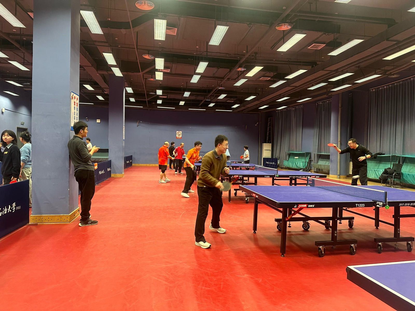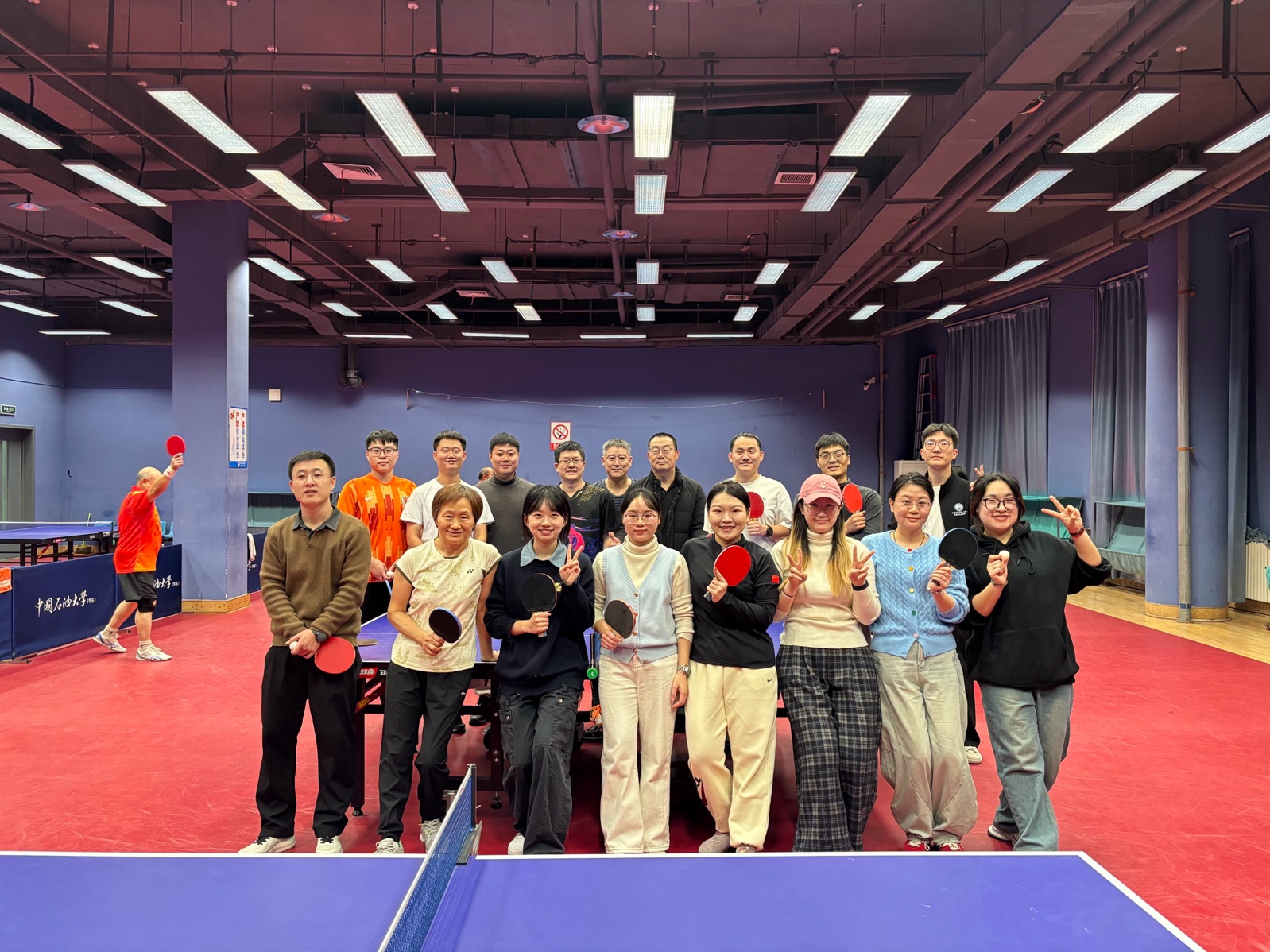 1月9日下午四点,学校乒乓球馆内暖意融融,银球飞舞间喝彩声此起彼伏,Beat365中文官方网站师生乒乓球友谊赛在此拉开帷幕。马院工会主席牛继玲、教师代表盛阿赛、仇乐宁、吕前昌、毕松等18位老师与研究生乒乓球爱好者齐聚赛场,在两小时的激烈角逐中谱写了师生同心的动人篇章。
